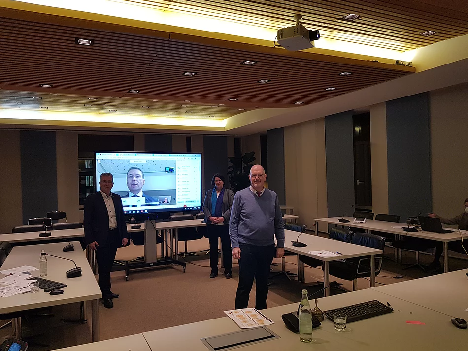 In einer gemeinsamen, digitalen Ratssitzung der Städte Oberasbach, Zirndorf und Stein konnten sich die Stadträte der drei Kommunen vom Projektfortschritt überzeugen. Außerdem wurde in Anwesenheit von Landrat Matthias Dießl sowie der drei Bürgermeister die feierliche Eröffnung Ende März 2021 und weitere Schritte der Zusammenarbeit besprochen.