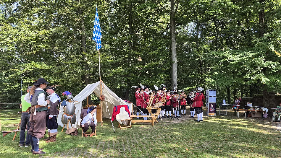 Die Belagerung und Schlacht an der Alten Veste von 1632 war ein zentrales Thema, und die Städte hatten mit dem Wanderweg rund um Wallensteins Lager und dem Festival weiter daran angeknüpft. Dr. Siedler, Leiter des Amtes für Landwirtschaft und Forsten, überbrachte einen Gruß von Staatsministerin Kaniber. Auch der stellvertretende Landrat Franz X. Forman betonte in seinem Grußwort noch einmal die herausragende Bedeutung des LEADER-geförderten Projekts für die Region.