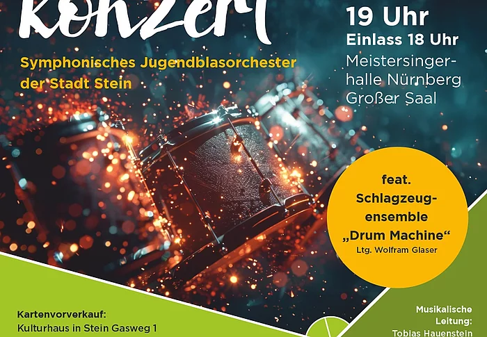 Erleben Sie einen mitreißenden Frühlingsabend voller Klangfarben und musikalischer Highlights! Das Symphonische Jugendblasorchester der Stadt Stein lädt Sie herzlich zum Frühjahrskonzert im Großen Saal der Meistersingerhalle ein.