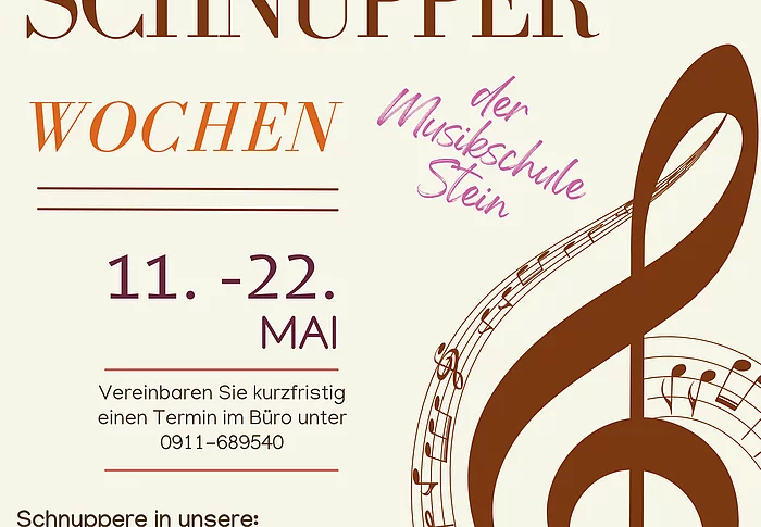 Erleben Sie Musik hautnah: Öffentlicher Unterrichtsbesuch an der Musikschule! Wir öffnen unsere Türen für eine Gelegenheit, die Welt der Musik durch öffentliche Unterrichts- und Ensemblebesuche zu erkunden! Vom 11. bis zum 22. Mai laden wir alle Interessierten dazu ein, kostenlos an ausgewählten Unterrichtsstunden und Ensembles teilzunehmen und unsere Lehrkräfte in Aktion zu erleben.