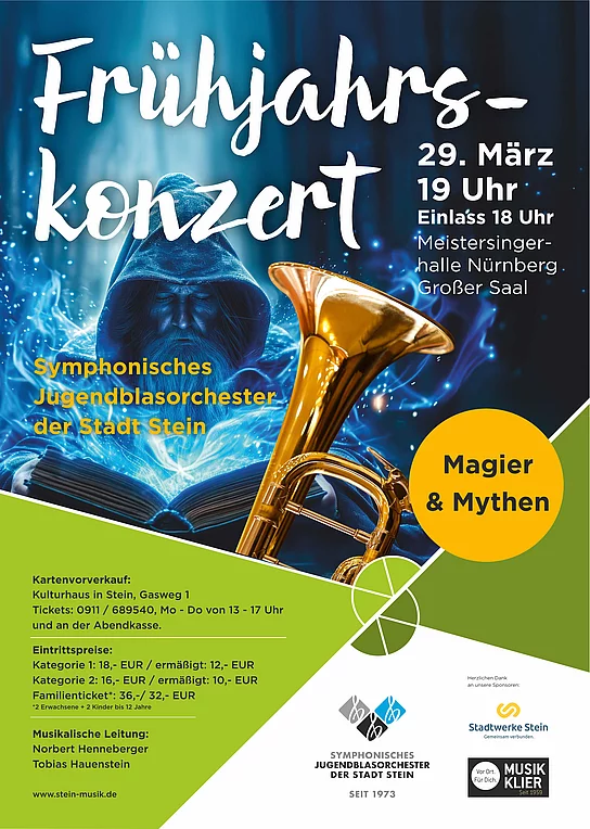Lassen Sie sich verzaubern und tauchen Sie ein in eine Welt voller Mystik und Legenden! Unter dem Motto "Magier und Mythen" präsentieren wir eine Auswahl an Stücken, die die Magie von Sagen und fantastischen Erzählungen einfangen. Von Melodien, die Zauberer und Helden beschreiben, bis hin zu geheimnisvollen Klängen vergangener Mythen. Freuen Sie sich u.a. auf: EXCALIBUR Jose Alberto Pina FATE OF THE GODS Steven Reinicke ALADDIN Arr. Johnnie Vinson HARRY POTTER John Williams Tickets und weitere Informationen Kartenvorverkauf im Kulturhaus in Stein, Gasweg 1, Mo – Do von 13 – 17 Uhr (1. Stock/Zimmer 108) und an der Abendkasse. Beginn 19.00 Uhr Einlass 18.00 Uhr