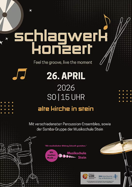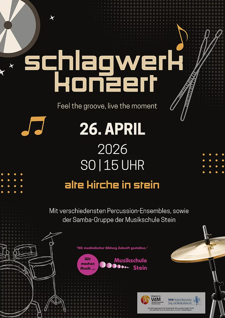 Am 26.04. um 15 Uhr lädt ein mitreißendes Schlagwerkkonzert in die Alte Kirche in Stein ein.