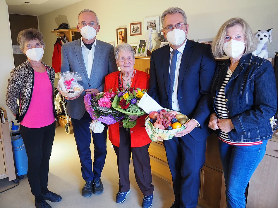 Es ist einer der ersten Besuche von Bürgermeister Kurt Krömer bei einer Jubilarin seit Beginn der Pandemie und dann gleich ein sehr besonderer: mit ihrem Geburtstag heißt Krömer die Steiner Bürgerin Ursula Kahl im erlesenen Kreis der über Hundertjährigen willkommen und überbringt herzliche Glückwünsche.