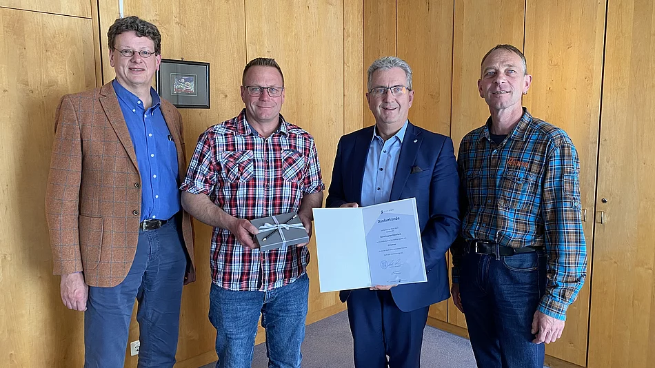 Sein Engagement geht weit über das normale Maß hinaus. Seit fast einem Vierteljahrhundert ist Herr Haberland eine verlässliche Stütze des städtischen Bauhofs. Seine gewissenhafte, verantwortungsvolle und stets hilfsbereite Arbeitsweise macht ihn nicht nur bei Kolleginnen und Kollegen, sondern auch bei der Stadtverwaltung äußerst geschätzt.