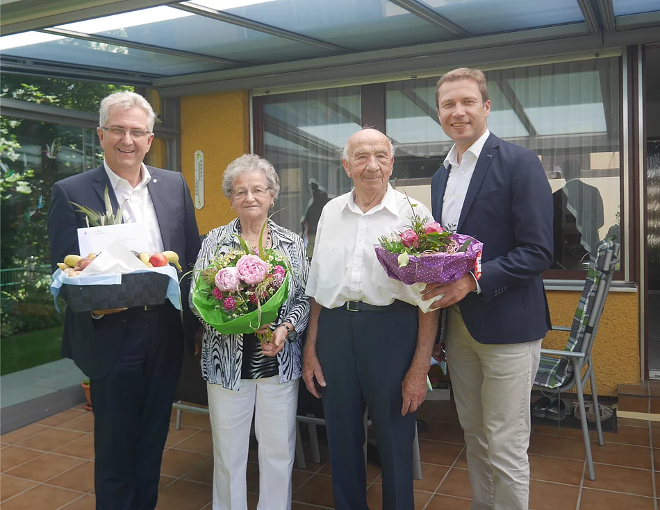 Kennengelernt haben sich die beiden beim Tanzen. 1952 heirateten sie in Schmiedeberg in Tschechien. Seit 40 Jahren leben sie in Stein. Vorher wohnten sie 13 Jahre in Nürnberg und zuvor in Niederbayern. Er war von Beruf Tischler aber schwenkte an seinem neuen Arbeitsplatz auf Motortechnik um. Eine Leidenschaft die auch Margareta mit ihm teilte. 25 Jahre arbeitete sie mit ihm in der selben Firma und wickelte dort Motoren. Das Ehepaar hat 3 Kinder, 5 Enkel und 4 Urenkel, die alle zum Jubiläum gratulierten. Gefragt nach dem Erfolgsrezept für eine solch lange Ehe, antwortete Konrad „Es ist ein harter Kampf“. ”Aber sie haben meine große Hochachtung”, ließ die Tochter wissen. Heute ist das rüstige Ehepaar noch sehr aktiv. Er mäht im Garten den Rasen und kümmert sich um die Blumen. Sie strickt gerne und knüpft einen Teppich. Einmal im Monat trifft man sich am Stammtisch, das geht nach Corona jetzt wieder. Da werden alte Geschichten erzählt. Konrad kommt ursprünglich aus dem Böhmerwald. Margareta aus dem Erzgebirge. Darauf legt Konrad jedoch nicht sein Augenmerk. Vielmehr vertritt er die These: „Die Vergangenheit ist Geschichte“. Und noch etwas ist bemerkenswert. ”Die beiden sind unheimlich spontan”, so die Tochter. ”Wenn ich um16.30 Uhr anrufe und frage ob sie mit in den Biergarten gehen dauert es nicht lange und sie stehen beide bereit". Wir wünschen Margareta und Konrad Hable noch glückliche gemeinsame Stunden.