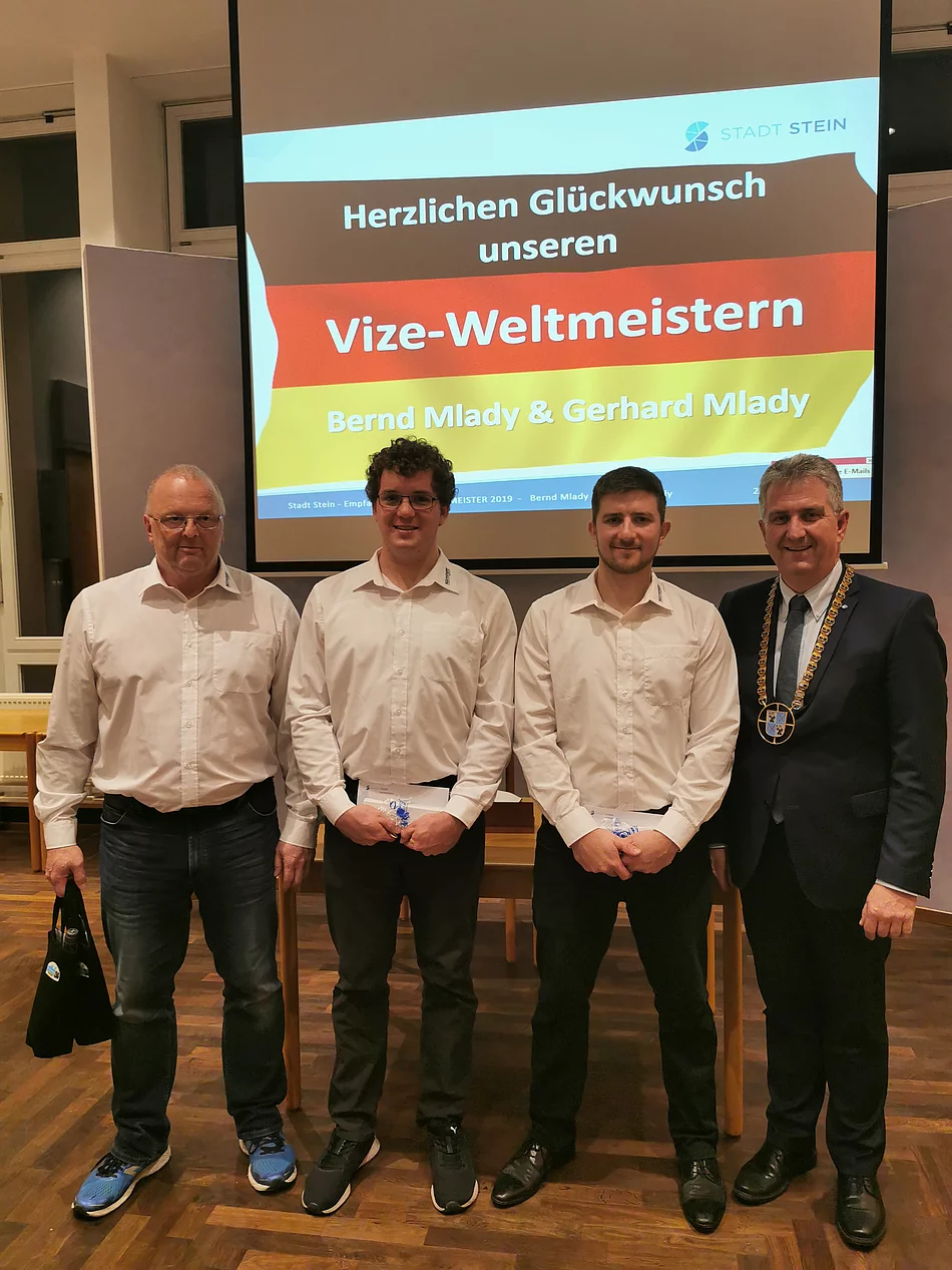 Jetzt, mit ein paar Tagen Abstand, hat die Enttäuschung bei Gerhard und Bernd Mlady nachgelassen. Kurz nach dem verlorenen WM-Finale sah das noch ganz anders aus. Knapp mit 6 zu 8 verlieren sie gegen Österreich und holen, wie schon 2018, die Silbermedaille, verpassen damit ganz knapp WM-Gold. Allerdings ist diese Leistung trotzdem grandios, was das Stadtoberhaupt beim offiziellen Empfang im Rathaus deutlich macht. "Die gesamte Stadt Stein ist unheimlich stolz. Es ist unglaublich, auf welch hohem Niveau die Beiden Jahr für Jahr abliefern", so Erster Bürgermeister Kurt Krömer. Im feierlichen Rahmen und vor zahlreichen Steiner Fans und Stadtvertretern durften sich die Sportler am 23. Dezember in das Goldene Buch der Stadt Stein eintragen. "Es war eine richtig geile Weltmeisterschaft und vielen Dank unseren tollen Fans und der Stadt Stein für die tolle Unterstützung." Mit diesen Worten von Gerhard Mlady fand der Abend einen entspannten Ausklang. Und wenn man so möchte war dies für Bernd und Gerhard Mlady eine sehr schöne Einstimmung auf Heilig Abend. Jetzt gönnen sich die Jungs nach dem Saisonabschluss am 18. Januar erst einmal eine Pause – die sie sich mehr als verdient haben.