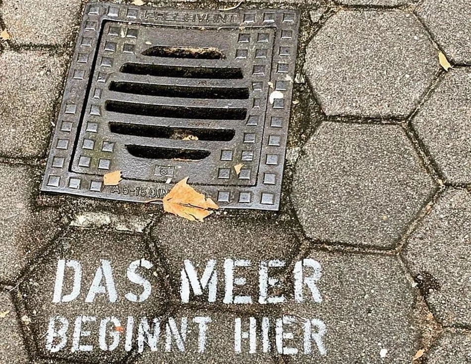 Zunehmende Umweltverschmutzung betrifft neben der Luft und der Erde auch die Gewässer - Flüsse, Seen und das Meer. Dass das Meer mehrere Hundert Kilometer von uns entfernt beginnt, ist ein großer Irrtum. Denn DAS MEER BEGINNT HIER. Jeder Gully, angeschlossen an die Kanalisation, ist Teil des Meeres. Jeder Abfluss ist Teil eines gigantischen unterirdischen Netzes, verbunden mit dem Meer. Aus diesem Grund verschmutzt jeder Müll, der achtlos auf die Straße geworfen wird, automatisch auch das Wasser in unseren Flüssen, Seen und Weltmeeren. Besonders schädlich: Zigarettenkippen. Jede Zigarette, achtlos auf die Straße geworfen, verschmutzt 40 Liter Grundwasser. Diese Verschmutzung hat zahlreiche drastische Folgen, die uns alle betreffen. Die Qualität des Leitungswassers nimmt nach und nach ab und das Trinkwasser ist zunehmend mit Schadstoffen belastet. Immer mehr Menschen auf der ganzen Welt haben kaum Zugang zu sauberem Wasser. Zahlreiche Tiere im Wasser, aber auch auf dem Land leiden unter der Verschmutzung, die Krankheiten und Artensterben zur Folge hat.