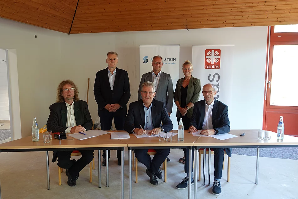 Seit drei Jahren sind die Räume des ehemaligen evangelischen Kindergartens der Paul-Gerhardt-Kirchengemeinde in der Goethestraße 1 leer, nachdem der neue Kindergarten in der Gerstenstraße 40 am Neubaugebiet im September 2019 eröffnet wurde. Nun unterzeichneten Steins Erster Bürgermeister Kurt Krömer für die Stadt Stein, Pfarrer Andreas Herden als Vorsitzender des Diakonieverein Stein e.V. und der geschäftsführende Vorsitzende des Caritasverbands für die Stadt und den Landkreis Fürth e.V., Michael Bischoff, die Mietverträge für eine weitere soziale Nutzung der Räumlichkeiten als „Sozial- und Familienzentrum Stein“ (SoFa Stein).