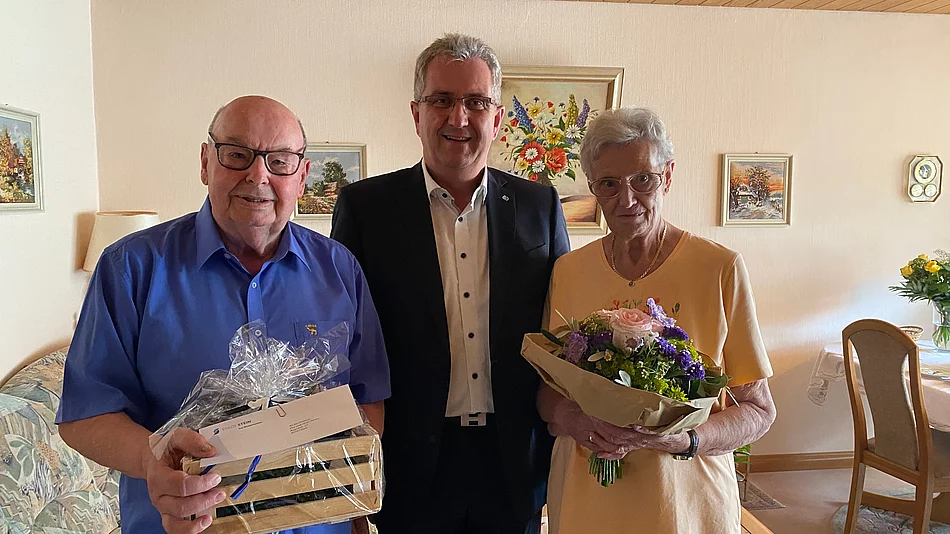 Auf 60 gemeinsame Jahre schauen Else und Heinz Distler zurück. Mit der Familie wird am Wochenende nachgefeiert, doch zum Ehrentag am 29. Juni überbrachte Erster Bürgermeister Kurt Krömer seine Glückwünsche und Geschenke.