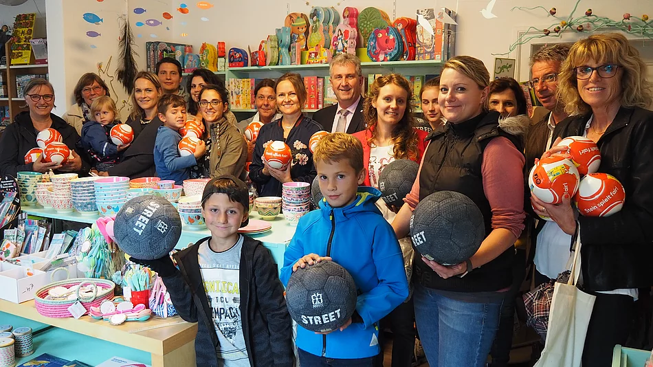 Unter dem Motto "Stein spielt fair" bietet die Spielboutique faire Spielbälle zum Kauf an. Damit unterstützt sie die Fairtrade- Steuerungsgruppe bei ihrer Mission, ein stärkeres Bewusstsein für faire Produkte zu schaffen. Inhaberin und Mitglied der Steuerungsgruppe Alexandra Schnell freute sich über das große Interesse an den Bällen und finanzierte mit deren Erlös wiederum faire Spiel- sowie Sportbälle, die nun an Steiner Schulen, Horte und Kitas übergeben wurden.