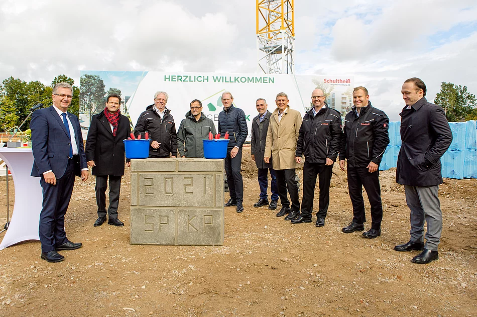 Nach zwei Jahren Planungs- und Abstimmungszeit ist am Donnerstag, den 06. Oktober 2021, der Startschuss für das Großprojekt “Krügelpark“ in Stein gefallen. Die Grundsteinlegung ist der erste große Schritt zu einem Wohnensemble mit 69 öffentlich geförderten sowie 185 weiteren Mietwohnungen mit einer Gesamtwohnfläche von rund 20.300 m² und einer Kindertagesstätte.
