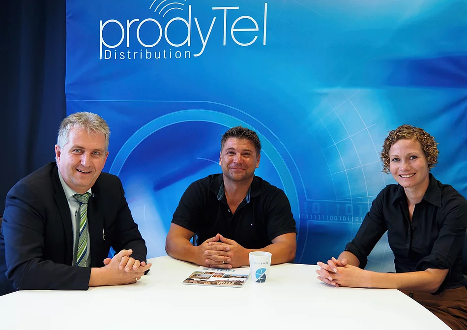 Seit sieben Jahren ist das Unternehmen in der Steiner Mühlstraße ansässig und wächst stetig. Aktuell bildet die Firma selbst eine Grafikdesignerin aus. „Ich verstehe es als soziale Verantwortung, die wir als Firma haben“, betont Carrero und ebnet mit dieser Aussage den Weg für eine neue Kooperation: Erster Bürgermeister Kurt Krömer möchte das Unternehmen nämlich gerne in die jährlich stattfindende „Nacht der Ausbildung“ einbinden. Die Idee fällt auf fruchtbaren Boden. Geschäftsführer Carrero kann sich gut vorstellen, Schülerinnen und Schüler in die Büros bei prodyTel schnuppern zu lassen. Sein Team setzt sich zusammen aus Bürokauffrauen und -männern, Informatikern, Ingenieuren, Technikern und Mitarbeitern im Vertrieb. „Bei mir zählt der Mensch noch mehr als Zeugnisse“, fasst Carrero seine Personalpolitik zusammen. Deshalb gehören zum prodyTel-Team auch Quereinsteiger, die sich autodidaktisch in die Materie eingearbeitet haben und zu Experten auf dem Gebiet der Konferenztechnik wurden. Alles in allem ergibt das eine familiäre Atmosphäre im Unternehmen, das künftig weiter wachsen möchte. Dabei können Förderprogramme wie der „Digitalbonus“ helfen, wie Wirtschaftsförderin Kratzer anmerkte. Sie bietet Steiner Unternehmen auch Unterstützung bei der Suche nach passenden Förderprogrammen an.