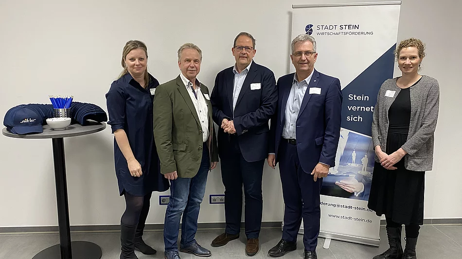 Das Unternehmerforum in der Stadt Stein drehte sich 2023 um das Thema Fachkräftegewinnung. Gastgeber des Abends für circa 30 Gäste aus Wirtschaft, Politik und Verbänden war die Nibler GmbH, ein bundesweit agierendes mittelständisches Unternehmen, das sich nach wie vor in Familienbesitz befindet. Nibler ist Partner für sämtliche Dienstleistungen, Bau- und Montagetätigkeiten in den Bereichen Kabelleitungstiefbau, Wegebau, Straßenbeleuchtung, Verkehrstechnik und Stahlbau und auf verschiedensten Baustellen in der ganzen Region im Einsatz. Von Stein aus werden über 450 qualifizierte Mitarbeiter an sieben Standorten betreut.