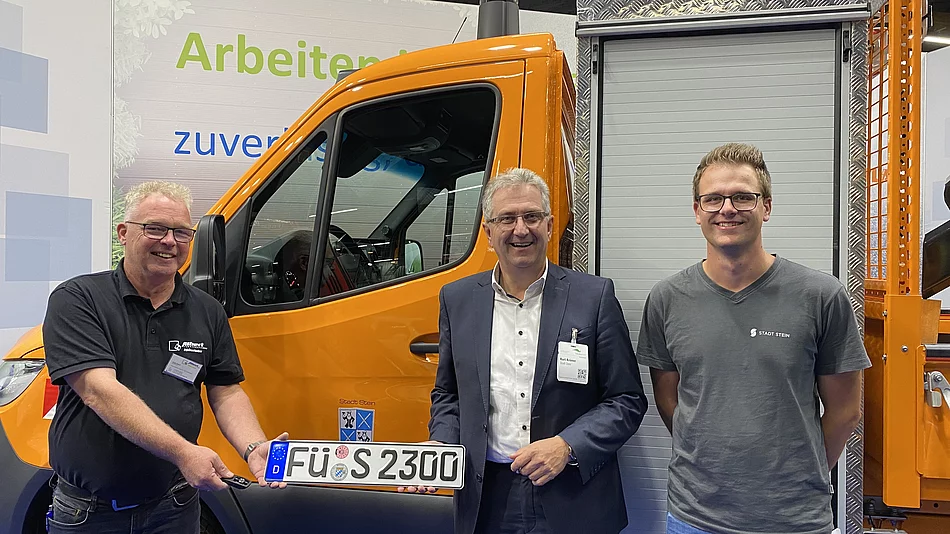 Im Rahmen der Messe GaLaBau wurden drei Fahrzeuge an die Stadtgärtnerei Stein übergeben. Dabei handelt es sich um Mercedes-Benz Sprinter in den Varianten von 3,5 t bis 5,5 t. Das Besondere daran ist ein individueller Aufbau.