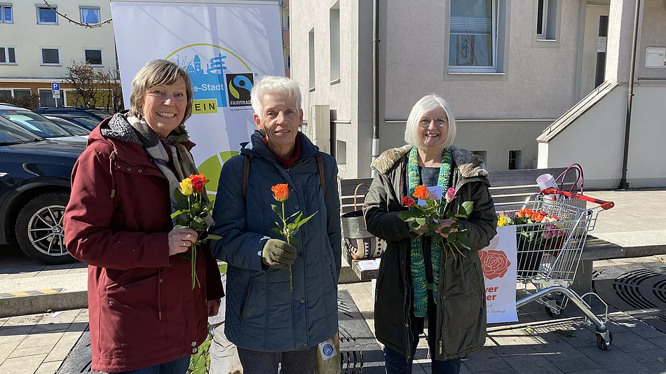 Am Weltfrauentag lobt Fairtrade Deutschland inzwischen schon traditionell die Rosenaktion „FlowerPower“ aus. Als Zeichen der Wertschätzung gibt es faire Rosen für Frauen. Die Steuerungsgruppe Fairtrade Stadt Stein beteiligte sich auch in diesem Jahr daran. So wurden am 8. März, dem Weltfrauentag, vor dem Forum Stein die Rosen verteilt.