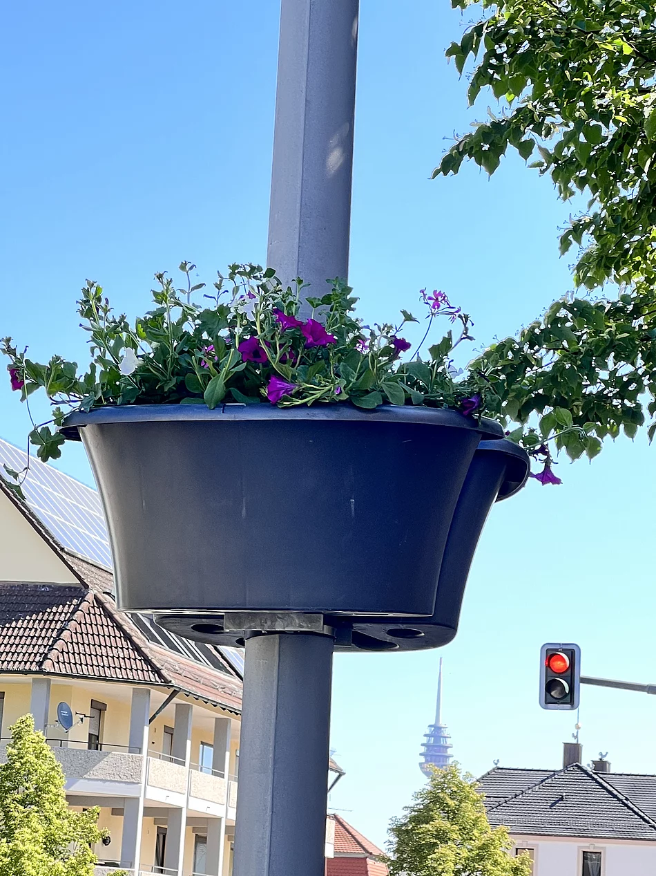 Vor etwa zwei Jahren, während selbst im Urlaub das Team der Stadtgärtnerei stets nach Inspirationen für die Verschönerung der Stadt Ausschau hielt, waren sie begeistert, als sie in Würzburg farbenfrohe Blumenampeln entdeckten.