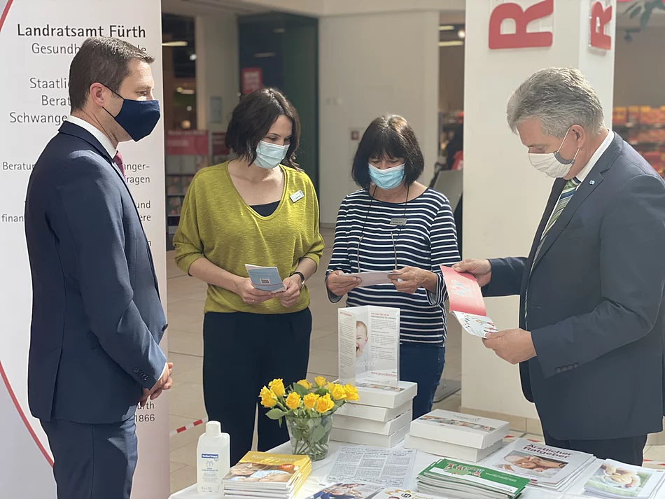 Steins Erster Bürgermeister Kurt Krömer machte sich vor Ort ein Bild davon: "Ich begrüße es sehr das die Geschäftsstellenleiterin der Gesundheitsregion Plus im Landkreis Fürth Kristina Przybyl in Zusammenarbeit mit vielen Kooperationspartner dieses umfangreiche Beratungsangebot auf die Beine gestellt hat. Danken möchte ich auch Landrat Matthias Dießl, das für den Auftakt die Stadt Stein gewählt wurde", so Krömer. Informationen gibt es während des Aktionsmonats zu den Themen Eltern- und Kindergesundheit, Ernährung und Unterstützungsmöglichkeiten für Eltern und Kinder. Auch persönliche Fragen rund um die Schwangerschaft und das Familienleben können gestellt werden. Hierfür steht an zwei Beratungstagen ein professionelles Team zur Verfügung. Die Termine hierfür und Informationen zu weiteren Vorträgen finden Sie hier