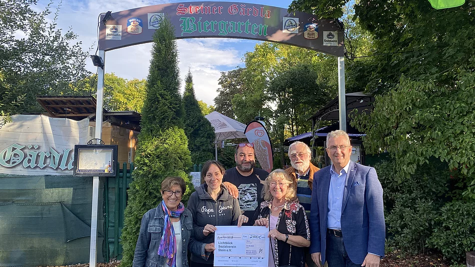 Großzügige Spende im Steiner Gärdla - Wirt übergibt Scheck an Sozialverein Lichtblick Stein e. V.