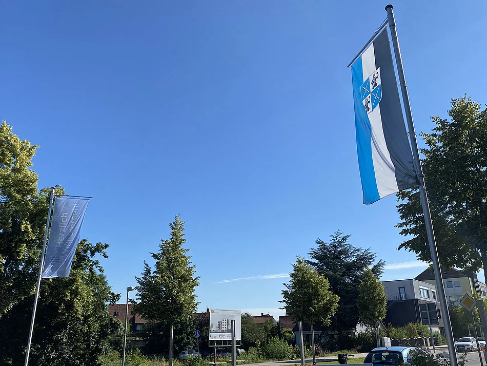 Wie in allen Städten fallen die großen Feste und Kulturveranstaltungen in Stein heuer Corona zum Opfer. Trotzdem, oder gerade deshalb, heißen die Stadtfahnen Besucher am Ortsteingang herzlich willkommen.
