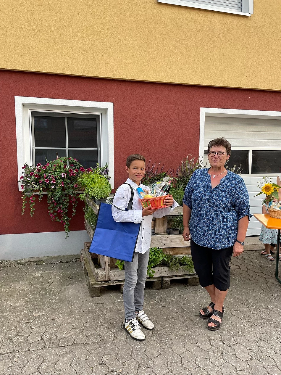 Tyrese, 10 Jahre alt aus Veitsbronn konnte seinen Geschenkkorb, der vom Milchhaus und Hofladen Lämmermann gestiftet wurde, persönlich entgegennehmen und berichtete stolz: „Ich hätte nie gedacht, dass wir gewinnen! Ich mach sehr gerne Ausflüge mit meiner Familie. Die Rätsel zu lösen hat mir auch großen Spaß gemacht.“ Mama Katja ergänzte noch, dass sie gleich eine große Radtour für ihre Familie geplant habe, als sie von der Aktion erfuhr. Davor habe sie gedacht, jeder Hofladen hätte nahezu identische Produkte im Angebot. Jetzt sei ihr aber die große Produktvielfalt bewusst geworden und sie habe zahlreiche neue Lieblingsprodukte gefunden.