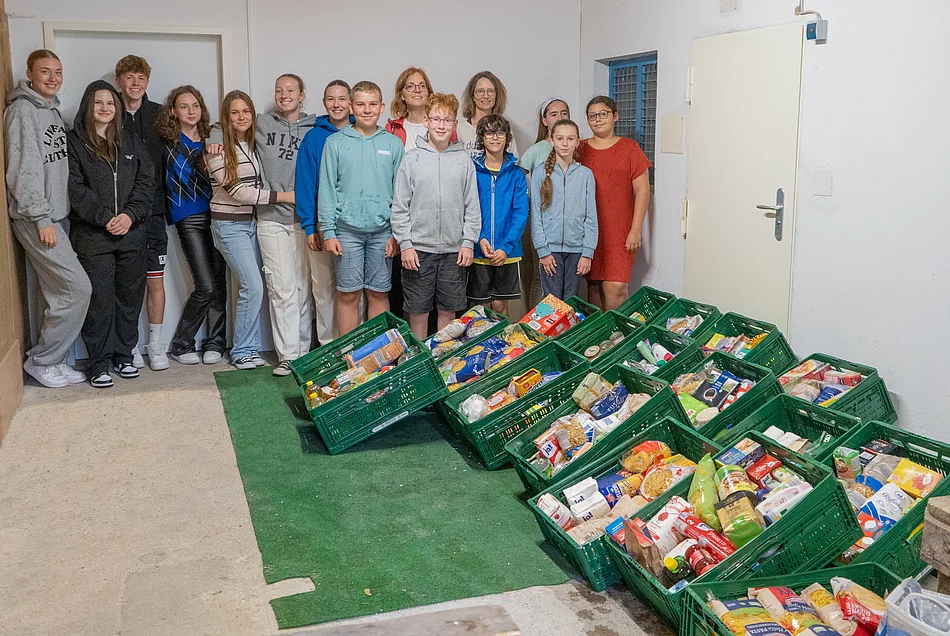 Die Freude über die zahlreichen Spenden war riesig, als die Schüler und ihre Lehrerinnen die Lebensmittel persönlich an die Steiner Tafel überreichten. Die Jugendlichen erhielten dabei auch einen Einblick in die wichtige Arbeit der vielen ehrenamtlichen Helferinnen und Helfer, die Woche für Woche dafür sorgen, dass bedürftige Menschen mit Lebensmitteln versorgt werden.