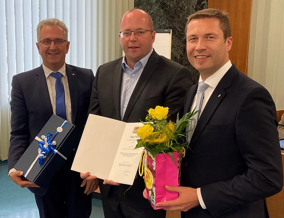 Die kommunale Dankurkunde ist eine Auszeichnung, die Personen erhalten, die sich durch eine langjährige Tätigkeit als kommunale Mandatsträger oder in anderen kommunalen Ehrenämtern um die kommunale Selbstverwaltung verdient gemacht haben. Diese Voraussetzungen erfüllt Bertram Höfer. Er hat seit 2005 langjährige ehrenamtliche Dienste in der kommunalen Selbstverwaltung zum Wohle der Allgemeinheit geleistet und übt diese als Kommunalpolitiker sehr engagiert aus. Sein besonderes Engagement liegt insbesondere in den Bereichen kommunaler Jugendarbeit, Schulen und Städtepartnerschaften. Als Referent für Jugend hat sich Bertram Höfer in der Zeit von 2008 bis 2014 sehr für die Belange der offenen Kinder- und Jugendarbeit eingesetzt. Als Referent für Städtepartnerschaften hat er sich zudem in der Amtsperiode vom 01.05.2014 bis zum 30.04.2020 verdient gemacht. Seit 2012 ist Bertram Höfer 2. Bürgermeister in Stein, seit 2014 ist er Kreisrat des Landkreises Fürth und seit 2020 führt er den Vorsitz im „Runden Tisch Familie“ – einem beratenden Unterausschuss des Jugendhilfeausschusses.