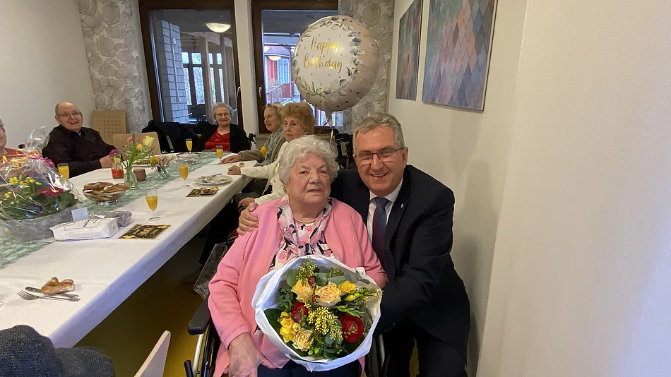 Zu Ihrem Geburtstag ließ es sich auch Steins Erster Bürgermeister Kurt Krömer nicht nehmen, zu gratulieren: „Sie haben in ihrem langen Leben viel erlebt und können auf ein Jahrhundert voller Erinnerungen zurückblicken. Es ist mir eine große Freude, ihnen heute die besten Wünsche der Stadt Stein zu überbringen“.