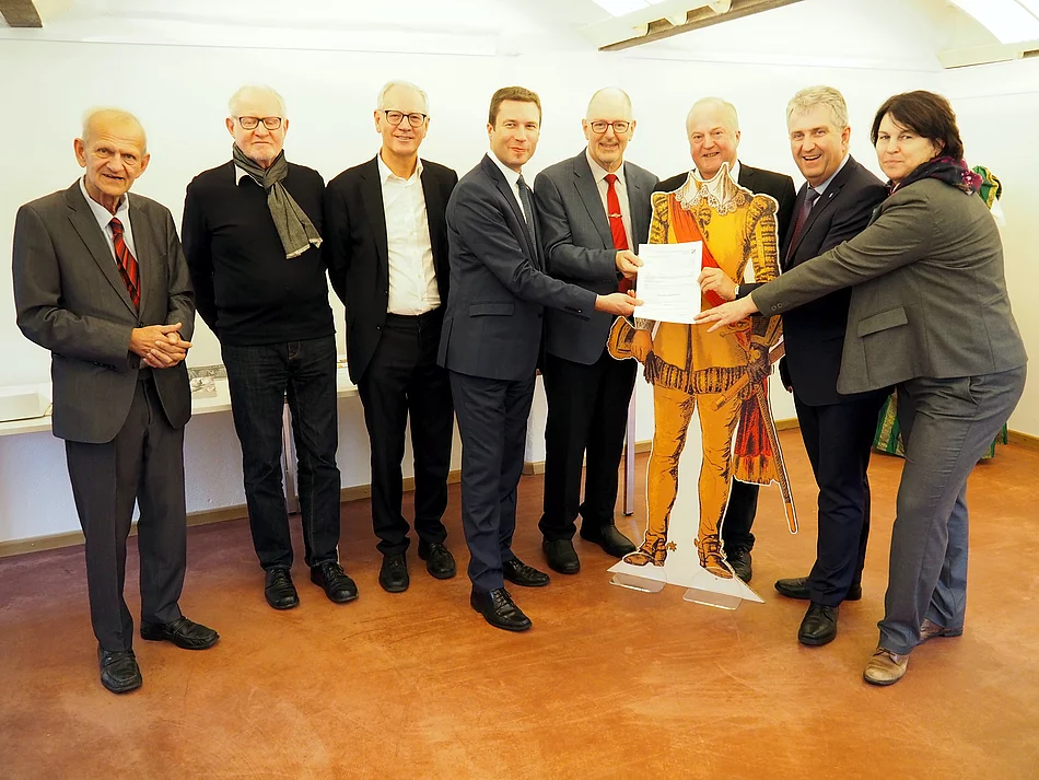 Am Kulturhaus ist der südliche Einstieg in den Erlebnisweg. Geplant ist hier eine Informationsstele zum Thema Kleidung und Ausrüstung. So erläuterte Katrin Weber, Leiterin der Trachtenforschungs- und -beratungsstelle, anhand einer lebensgroßen Pappfigur die Besonderheiten der Kleidung. An 26 weiteren Stellen soll die Dimension des Lagers deutlich werden. Mit dem Ziel einen historischen Bezug herzustellen. So zum Beispiel in Oberasbach. Denn wo heute das Rathaus steht, war einst der Munitionsplatz. Und an der Alten Veste in Zirndorf standen sich die Truppen von Wallenstein und Gustav Adolf in einer Schlacht gegenüber. Bei einem so großen Projekt waren im Vorfeld viele Gespräche nötig. "Wir hatten gemeinsame Stadtratssitzungen, die für sich schon bemerkenswert waren und überdies die letzten Zweifler überzeugt hat", bemerkte Zirndorfs Erster Bürgermeister Thomas Zwingel. Aktuell gilt es, die Ausschreibung für ein Umsetzungsbüro voranzubringen. Die ersten der insgesamt 27 Stationen sollen im Sommer bis Herbst 2020 entstehen, so der Plan. Finanziell unterstützt LEADER den Erlebnisweg mit 200.000 Euro, der höchstmöglichen Bezuschussung. Insgesamt belaufen sich die Kosten auf 525.000 Euro, welche sich die beteiligten Städte aufteilen. Damit ist der Erlebnisweg auch ein Beispiel für die gute Zusammenarbeit der Kommunen. LEADER steht für "Liaison entre actions de développement de l'économie rurale", was übersetzt so viel bedeutet wie "Verbindung zwischen Aktionen zur Entwicklung der ländlichen Wirtschaft". LEADER ist ein Förderprogramm der Europäischen Union, mit dem seit 1991 innovative Aktionen im ländlichen Raum gefördert werden.