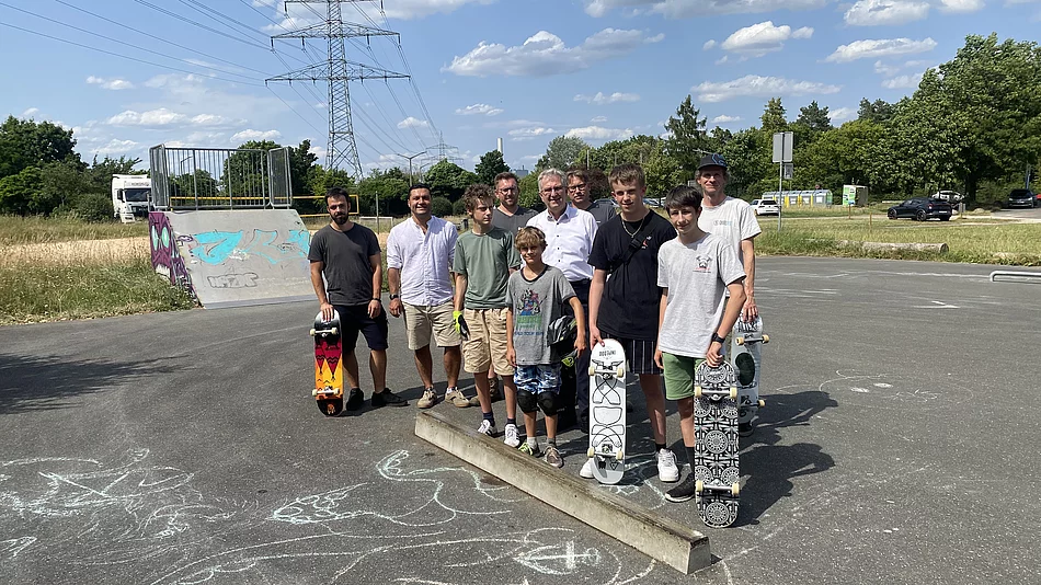 Ein besonderes Highlight: Das „Rail“, ein langes, metallisches Stangenelement, auf dem Skateboarder fahren oder Tricks machen können, ist bereits voll funktionsfähig. Es ermöglicht den Jugendlichen, ihre Balance zu testen und kreative Tricks auszuführen. Das „Slappycurb“ ist ein niedriger, kantiger Betonblock, der in etwa die Form eines Bordsteins hat. Skater können darüber „sliden“ (eine Art Trick, bei dem das Board seitlich über die Kante gleitet). Ein weiteres Element, eine Betonpyramide, wurde ebenfalls installiert. Diese pyramidenförmige Struktur ist ideal, um mit dem Skateboard darauf zu fahren und verschiedene Tricks auszuführen.