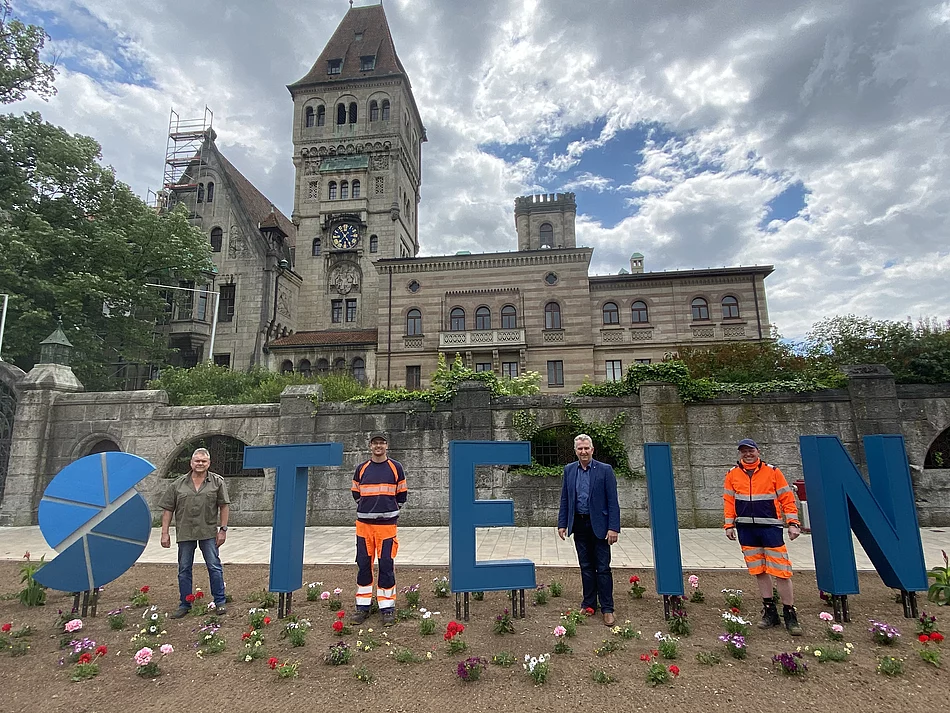 Aufgebaut und gestaltet wurde dieser neue Blickfang von der Steiner Gärtnerei in Zusammenarbeit mit dem Bauhof. Nachdem die Arbeiten nahezu komplett abgeschlossen waren, hat sich auch Steins Erster Bürgermeister Kurt Krömer davon ein Bild gemacht, der sich hoch zufrieden zeigte: "Wir haben tolle Mitarbeiter, die sich immer etwas einfallen lassen, damit unsere Stadt noch schöner und lebenswerter wird. Dies haben sie mit diesem neuen Schriftzug einmal mehr bewiesen, der mit viel Liebe gestaltet wurde. Dafür möchte ich mich recht herzlich bedanken", so Krömer. Die einzelnen Buchstaben wurden massiv verankert, was bei dem vorhandenen Gewicht auch notwendig ist. So wiegt beispielsweise das "N" 130 kg. Die liebevolle Gestaltung und auch die Bepflanzung haben die Steiner Bürger dem Team der Gärtnerei zu verdanken unter der Federführung von Jürgen Nollenberger und zusätzlich tatkräftiger Unterstützung von Ivonne Boecker und Calvin Keppner. Dieser Schriftzug wird vorerst einmalig bleiben. Sollten die Steiner aber Gefallen daran finden, sind Weitere natürlich nicht ausgeschlossen.