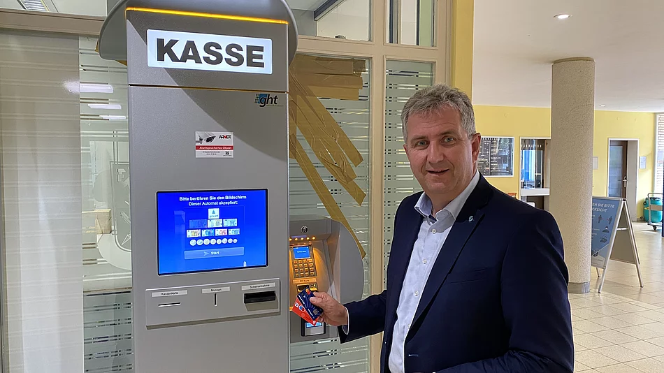 Wenn beispielsweise ein Reisepass oder Personalausweis beantragt wird, können die Gebühren direkt über den Kassenautomaten eingezahlt werden. Möglich ist das mit der normalen Scheckkarte oder auch Kreditkarte, was dann direkt in das System eingebucht wird. Selbstverständlich kann nach wie vor auch bar bezahlt werden, aber dies der Unterschied, jetzt nur noch an dem neuen Automaten. Erster Bürgermeister Kurt Krömer zeigt sich zufrieden: "Mit diesem Kassenautomaten haben wir eine zeitgemäße Zahlungsmöglichkeit eingerichtet. Bei Fragen oder Problemen stehen aber natürlich auch die Rathaus-Mitarbeiter immer gerne zur Verfügung."