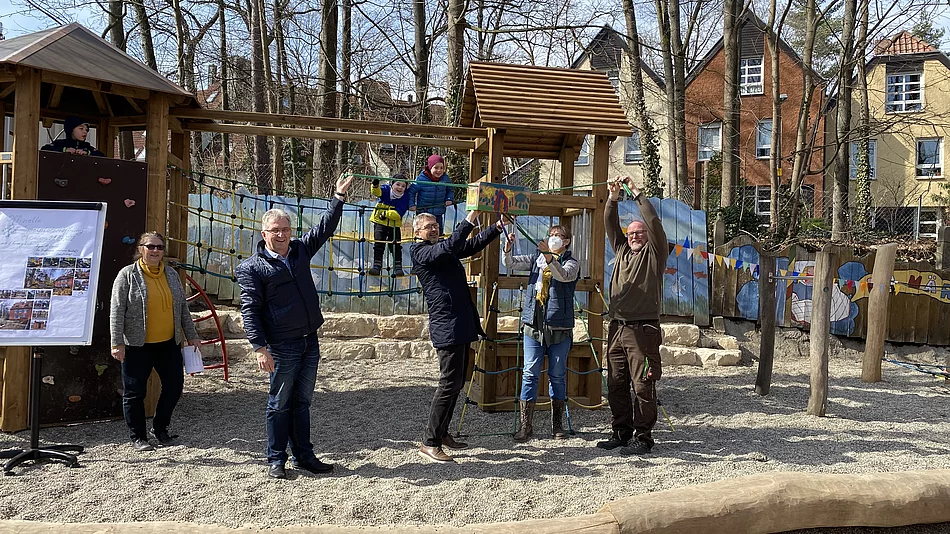 Ob ein Spielplatz gelungen ist, kann ganz einfach getestet werden. Kindermund tut Wahrheit kund und das ist im Fall des neu gestalteten Spielgartens im Kindergarten Gräfin Ottilie nicht anders. Mit großer Begeisterung haben sich die Kleinen darauf gestürzt. Die strahlenden Kinderaugen und die ständige Nutzung des Spielgartens sind Beweis genug. Jetzt wurde im Beisein von Ersten Bürgermeister Kurt Krömer der Spielplatz offiziell eröffnet.