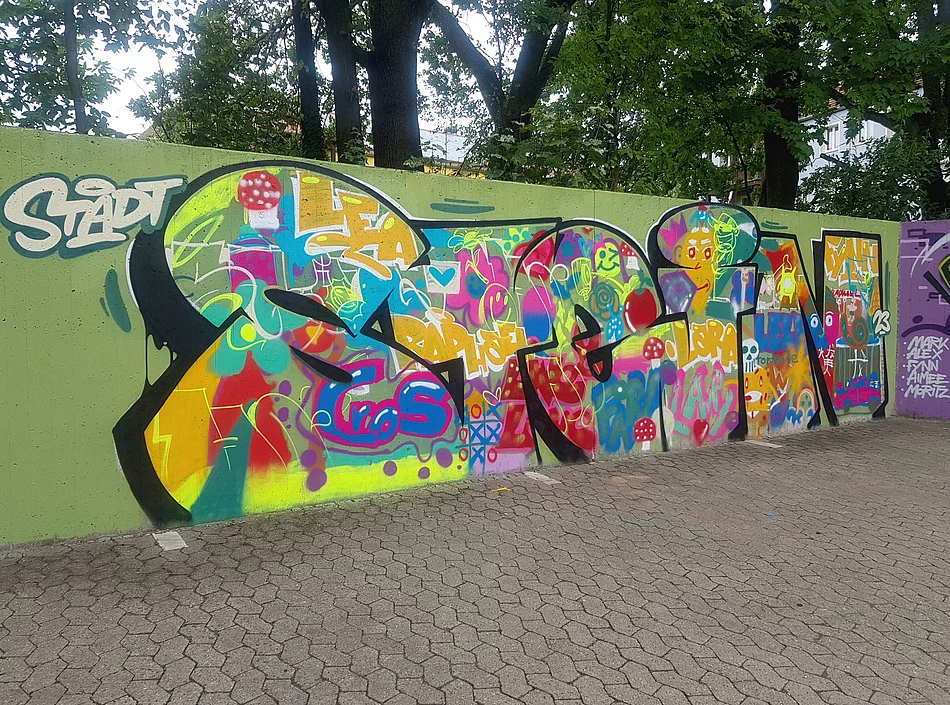 Der Workshop, der im Rahmen des Ferienprogrammes 2023 vom Steiner Jugendhaus angeboten wurde, dauerte zwei Tage. Der 24. August galt dem Ideenaustausch, dem Anfertigen von Skizzen und dem Sprayen kleinerer Projekte gepaart mit einem Einblick in die Geschichte der Graffiti-Kunst.