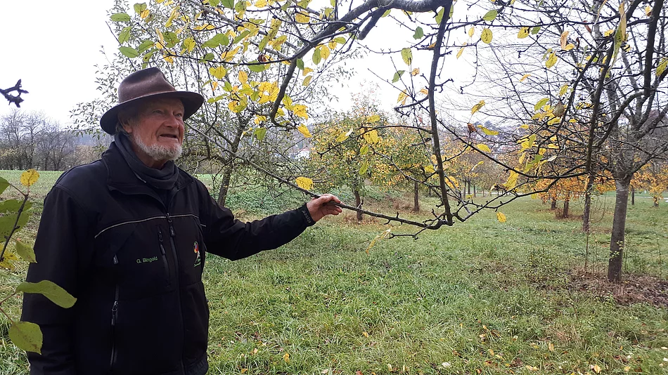 Günter Bingold, Gartenpfleger im Obst- und Gartenbauverein Großhabersdorf und ausgebildeter Baumwart, teilt sein Wissen zum sogenannten Winterschnitt an Obstbäumen