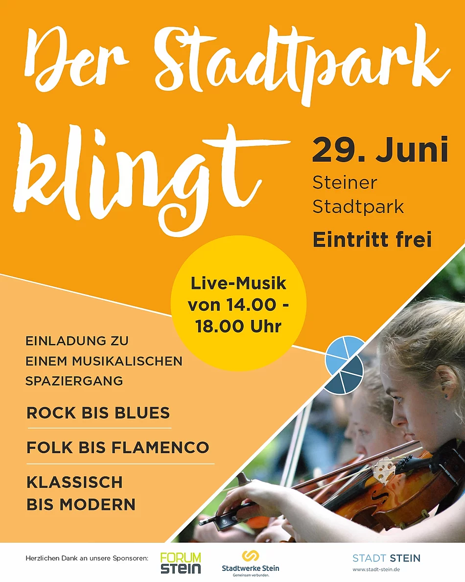 Wir laden Sie zu einem musikalischen Spaziergang durch den Steiner Stadtpark ein. Dabei können Sie an vielen Stationen Musikern verschiedenster Stilrichtungen lauschen. Alle Informationen dazu finden Sie HIER
