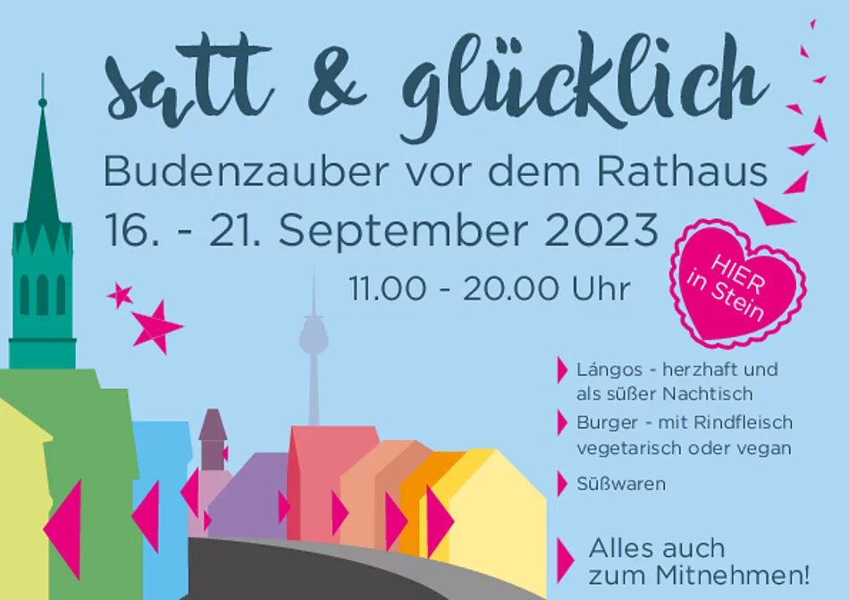 Wir laden Euch ein auf eine neue Runde „satt & glücklich – Budenzauber vor dem Rathaus“!