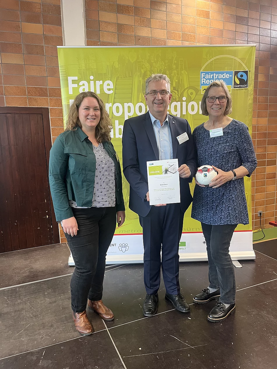 Die Stadt Stein ist dem „Pakt zur nachhaltigen Beschaffung in den Kommunen der Europäischen Metropolregion Nürnberg“ beigetreten. Dieser Pakt, der am 19. Juli 2019 in der Ratssitzung der Metropolregion Nürnberg beschlossen wurde, soll die Bedeutung des Fairen Handels und der nachhaltigen Beschaffung sowie das Engagement der Fairtrade-Region unterstreichen.