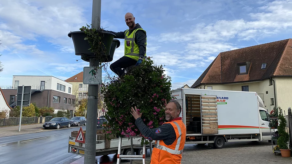 Der Winter steht vor der Tür und die in der Bürgerschaft gut angekommenen Blumenampeln werden dieser Tage abgebaut.