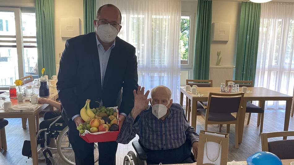 Geboren und aufgewachsen ist Konrad Reusch in Nürnberg. Nach seinem Schulabschluss arbeitete er bis 1939 als Schlosser. Diesen Beruf übte er aus, bevor er als Soldat in den 2. Weltkrieg eingezogen wurde. Konrad Reusch kämpfte in Stalingrad und war bis 1950 in russischer Kriegsgefangenschaft. Schreckliche Jahre, die Konrad Reusch bis heute prägten. Nach einigen Jahren in Nürnberg zog er 1969 nach Stein und arbeitete bis zu seinem Ruhestand bei Siemens als Industriemeister. Noch im vergangenen Jahr lebte er zuhause. Nun ist er Bewohner im Steiner Seniorenheim Spectrum und freute sich an seinem Geburtstag über die zahlreichen Glückwünsche, unter anderem von 2. Bürgermeister Bertram Höfer: „Ich kenne Herrn Reusch schon einige Jahre und die Geburtstagsbesuche bei ihm machen mir immer große Freude. Es ist ein besonderer Mensch mit einem wunderbaren Humor. Ich wünsche Konrad Reusch noch viele schöne Jahre und natürlich die nötige Gesundheit“.