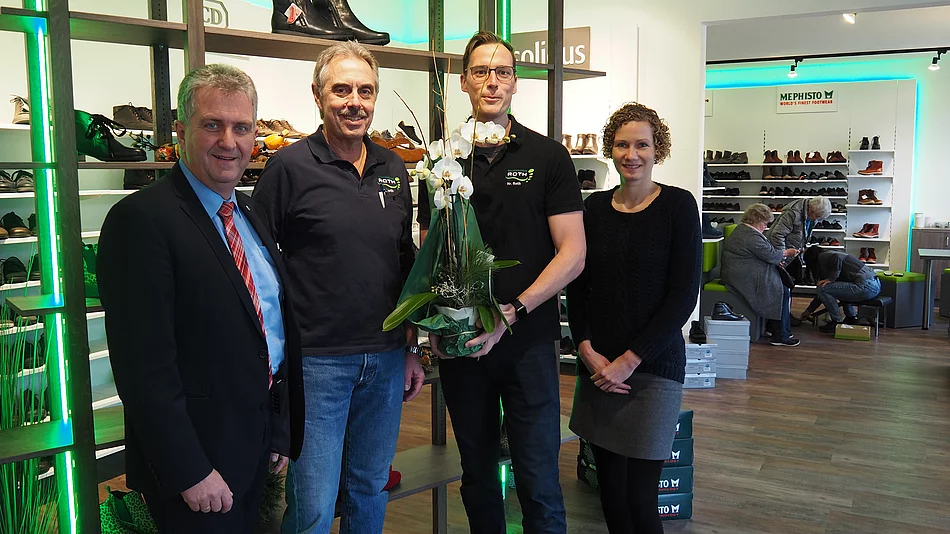 Seit 17 Jahren ist das Geschäft Bequemschuhe Roth an der Steiner Hauptstraße zu finden. In diesem Jahr wurde die Verkaufsfläche fast verdoppelt. Das spricht für den Erfolg des Unternehmens. Im Namen der Stadt Stein haben Erster Bürgermeister Kurt Krömer und Wirtschaftsförderin Anne Kratzer Glückwünsche überbracht.