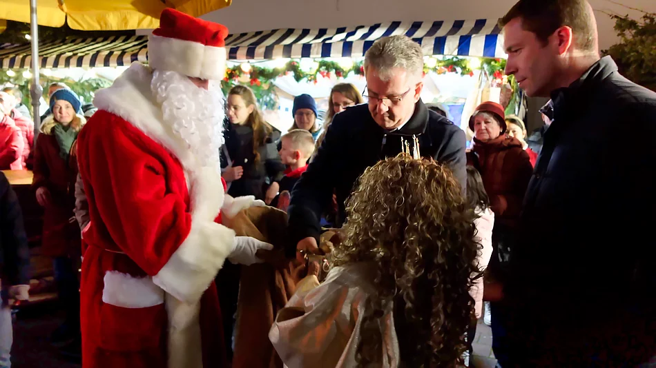 Der Höhepunkte des Weihnachtsmarktes war die offizielle Eröffnung durch das Christkind, den Weihnachtsmann sowie Ersten Bürgermeister Kurt Krömer. Auch Landrat Matthias Dießl ließ sich die Eröffnung nicht entgehen und genoss die außergewöhnliche Stimmung auf dem Mecklenburger Platz.