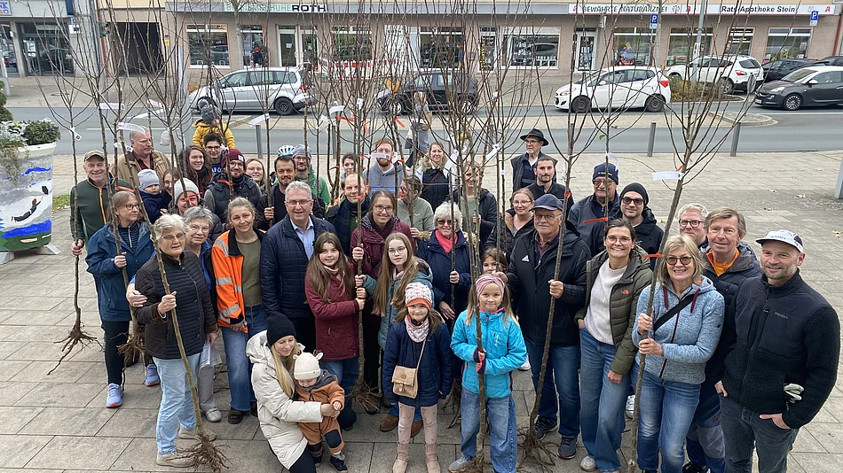 Bei der Aktion „Streuobst für alle!“ haben 26 Steiner Bürgerinnen und Bürger gemeinsam 37 neue Obstbäume erhalten. Diese werden nun nicht nur das Stadtbild verschönern, sondern auch zur Förderung der biologischen Vielfalt in Stein beitragen.