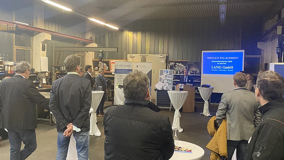 Unter dem Motto "Fit für die Übergabe" stand das Unternehmerforum 2020 der Stadt Stein. Insgesamt 30 Steiner Vertreter aus Wirtschaft, Politik und Verbänden trafen sich bei der Lang GmbH in der Bogenstraße.