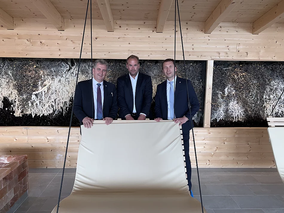 Landrat Matthias Dießl besichtigte zusammen mit Steins Bürgermeister Kurt Krömer das Kristall Palm Beach in Stein. Es ist eines der größten und am meisten besuchten Erlebnisbäder in Nordbayern.