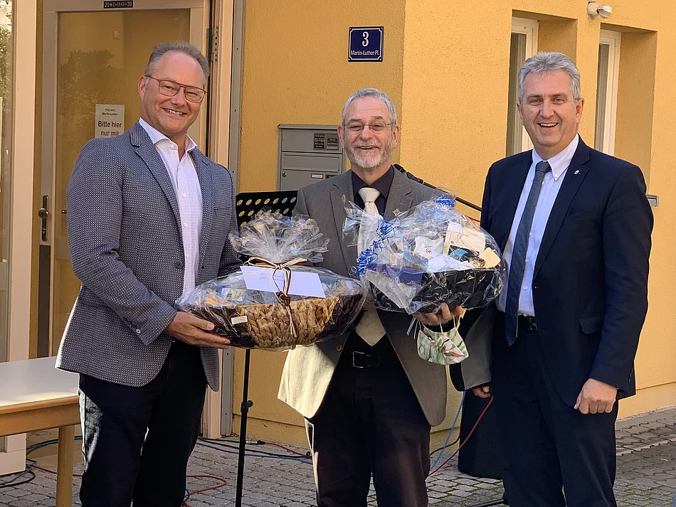 Am Sonntag (27. September 2020) feierte Pfarrer Ackermann seinen Abschied von der Martin-Luther-Gemeinde Stein. Bei den Feierlichkeiten mit dabei: Dekanin Almut Held, die Familie, der Kirchenvorstand sowie geladenen Gäste.