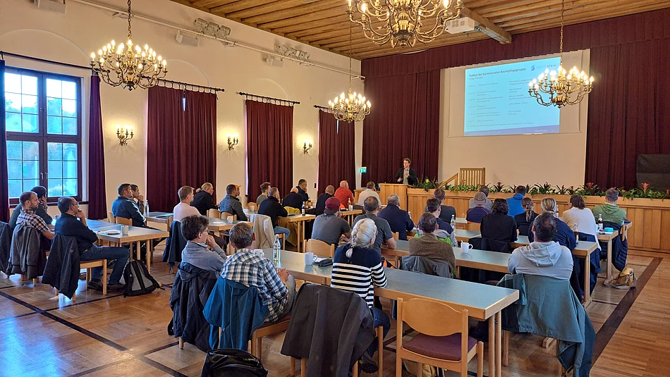 Die Bedeutung der Vernetzung und des Austauschs betonte Bürgermeister Kurt Krömer in seiner Eröffnungsrede: „Ich freue mich, dass wir als Stadt Stein Gastgeber dieser Veranstaltung sein können, da wir durch den interkommunalen Austausch die Grünflächen in Stein klimaangepasst weiterentwickeln und verbessern können.“