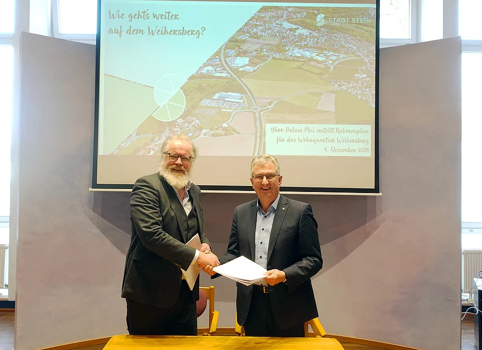 Der städtebauliche Wettbewerb zum neuen Quartier Weihersberg wurde 2023 initiiert und stand von Anfang an im Zeichen einer umfassenden Bürgerbeteiligung. Nach einer Bürgerinformation und zwei Bürger-Workshops und einer Online-Befragung in 2023 wurden elf Planungs-Entwürfe eingereicht, die in einem mehrstufigen Verfahren von einem Preisgericht geprüft wurden. Am 19. Februar 2024 feierte die Stadt Stein die Eröffnung der Ausstellung der Wettbewerbsbeiträge im Forum Stein. Bis zum 2. März hatten interessierte Bürgerinnen und Bürger Gelegenheit, die Pläne und Modelle vor Ort zu besichtigen.