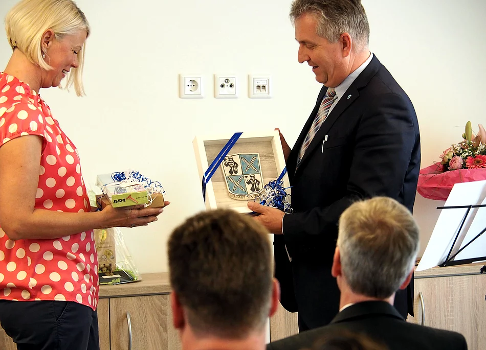 "Wir wollen unsere älteren Mitbürger nicht abschieben, sondern dort haben, wo das Leben stattfindet", betonte Erster Bürgermeister Kurt Krömer. Deshalb sei es keine Frage gewesen, ob das Stadtzentrum der geeignete Platz für das Pflegeheim ist. Vor allem die Lage neben dem Einkaufszentrum Forum eröffnet den zukünftigen Bewohnern viele Möglichkeiten. Gemeinsam habe die Stadtverwaltung und die Pflegeheimbetreiber die behördlichen Hürden überwunden und von der Baugenehmigung bis zur Eröffnung in regem Austausch gestanden. "Die Türen des Rathauses stehen immer offen", so Krömer. Auch Teil der Eröffnungszeremonie war eine Segnung des Hauses, die von Vikar Jonathan Gerber und Kaplan Christof Sommer gemeinsam durchgeführt wurde.