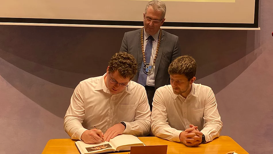 WM-Silber im Radball für Bernd und Gerhard Mlady - Eintrag ins Goldene Buch der Stadt Stein