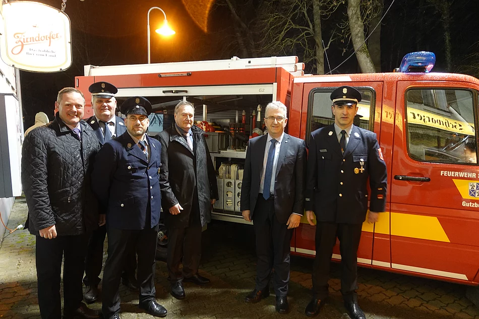 Im Namen der Stadt Stein konnte Steins Erster Bürgermeister Kurt Krömer zwei Tragkraftspritzenfahrzeuge (TSF) an die Feuerwehr Gutzberg und die beiden Kommandanten Christian Seidel und Markus Betz übergeben. Auch Landrat Bernd Obst und Kreisbrandinspektor Armin Betz von der Kreisbrandinspektion Landkreis Fürth beglückwünschten die Wehren zu ihren beiden Fahrzeugen.